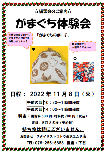 お気軽にがまぐちの付け方を体験をしてみませんか?