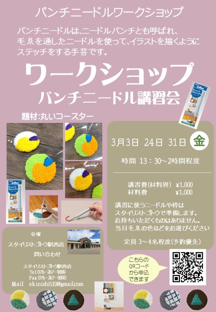 駅西店 パンチニードルワークショップ Vol.4 ご予約受付中