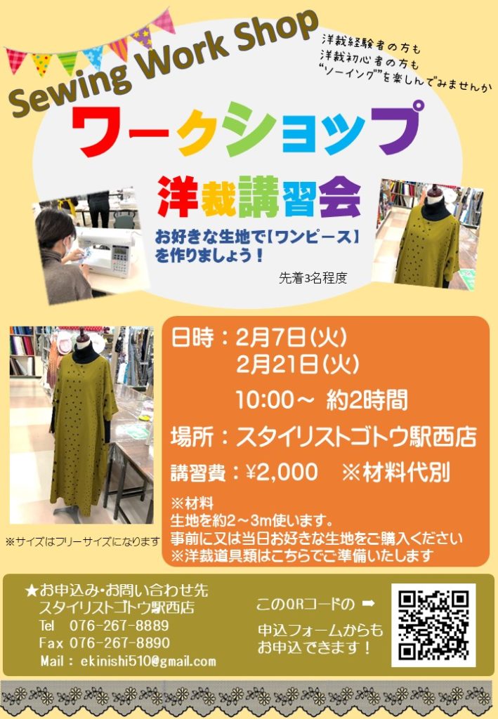 駅西店 ワンピースソーイングワークショップ Vol.3 ご予約受付中