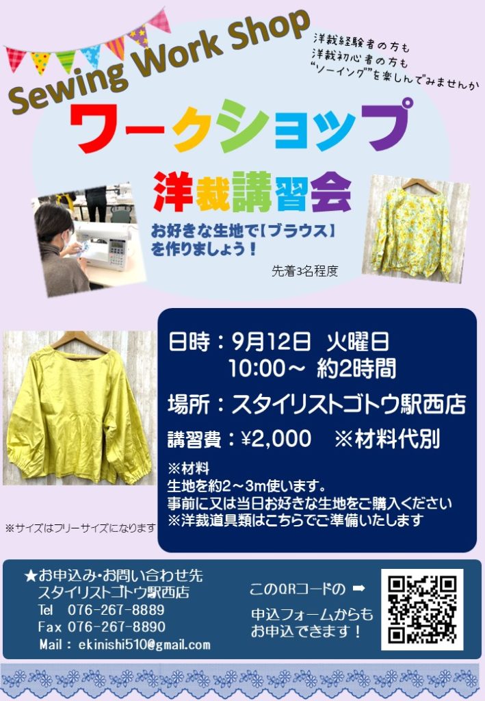 駅西店 ブラウスソーイングワークショップ Vol.7 ご予約受付中