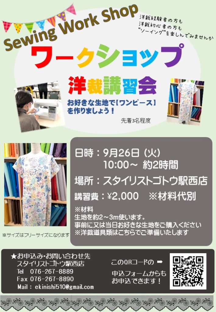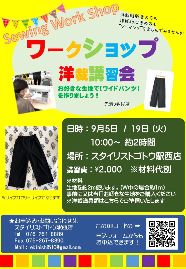 9月に駅西店で開催ワークショップのまとめページです。皆様のご参加心よりお待ちいたしております。