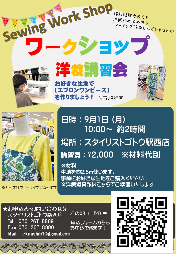 ソーイングワークショップ『ワンピース』(駅西店)