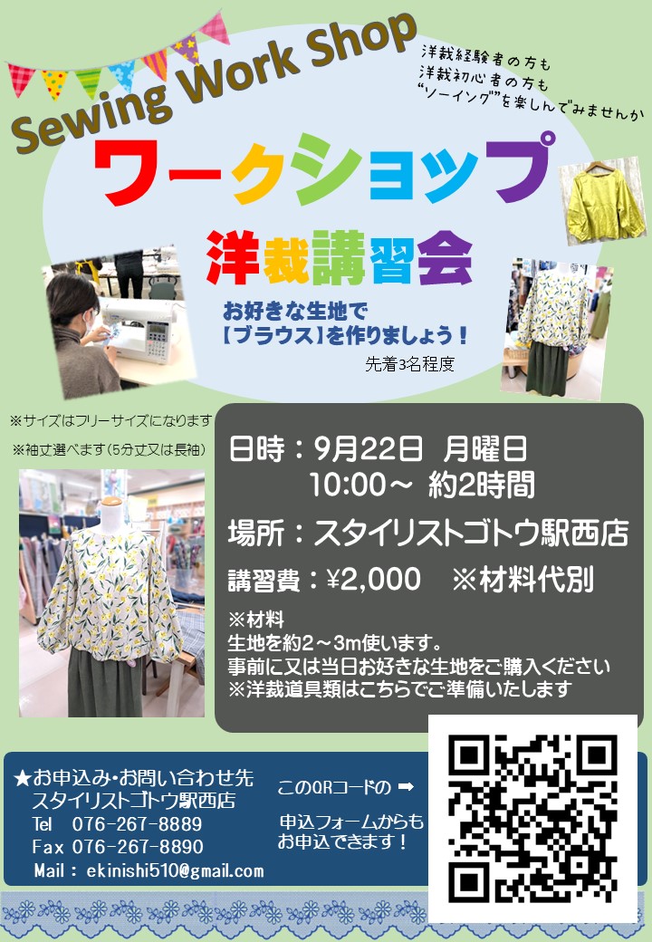 ソーイングワークショップ『ブラウス』(駅西店)