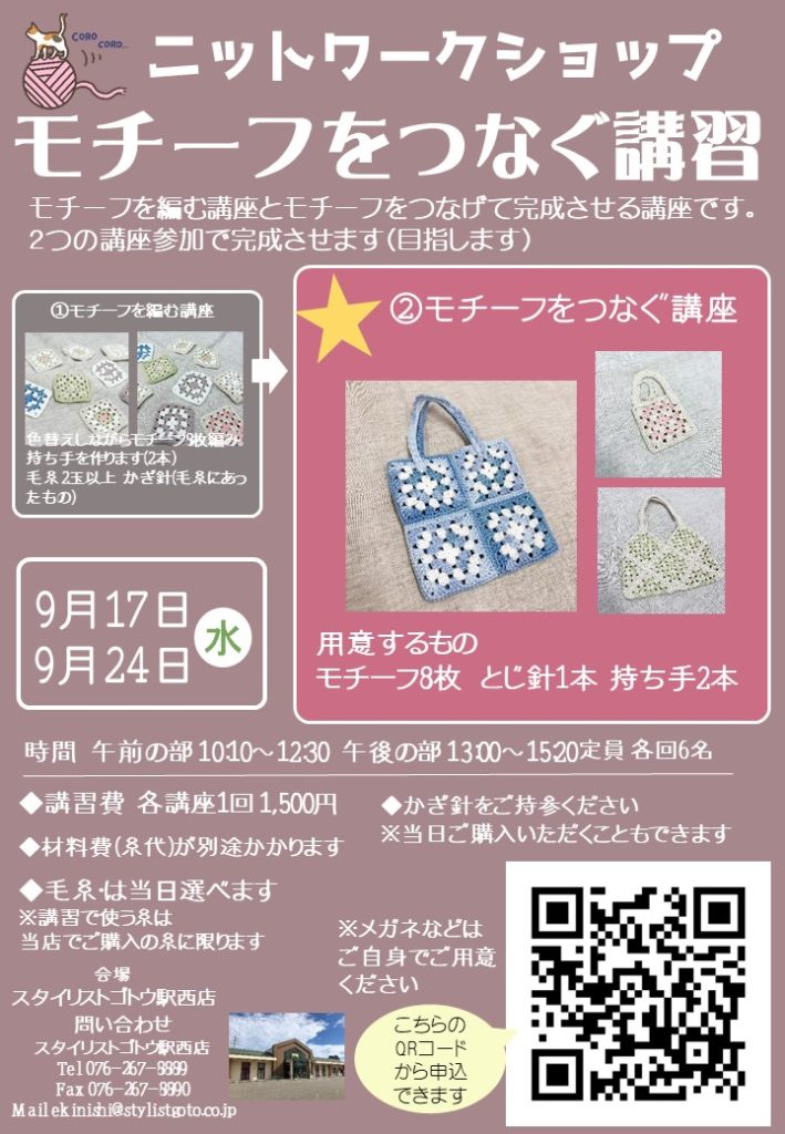 編み物ワークショップ『モチーフをつなぐ』(駅西店)
