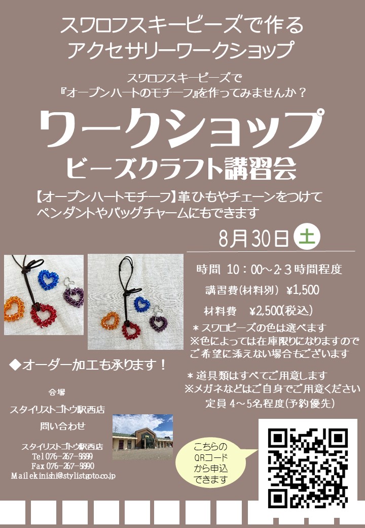 ビーズワークショップ『オープンハートチャーム』(駅西店)