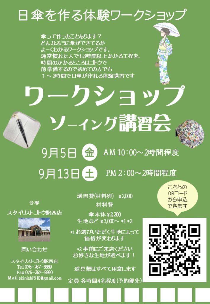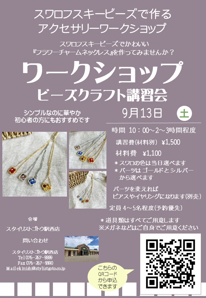 9月に駅西店と富山店で開催ワークショップのまとめページです。皆様のご参加心よりお待ちいたしております。
