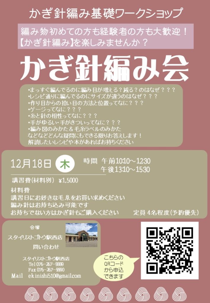 駅西店 12月開催『かぎ針編み会』