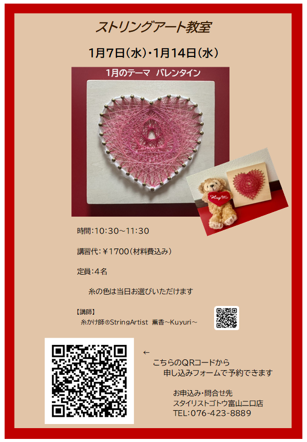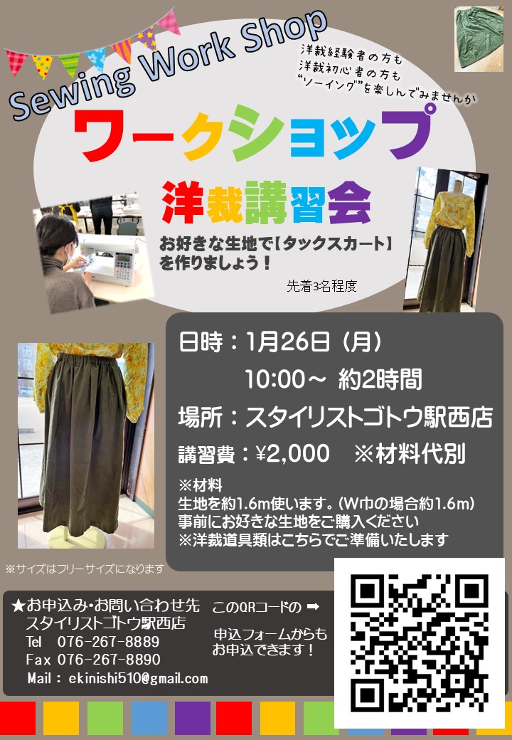 1月に駅西店と富山店で開催ワークショップのまとめページです。皆様のご参加心よりお待ちいたしております。