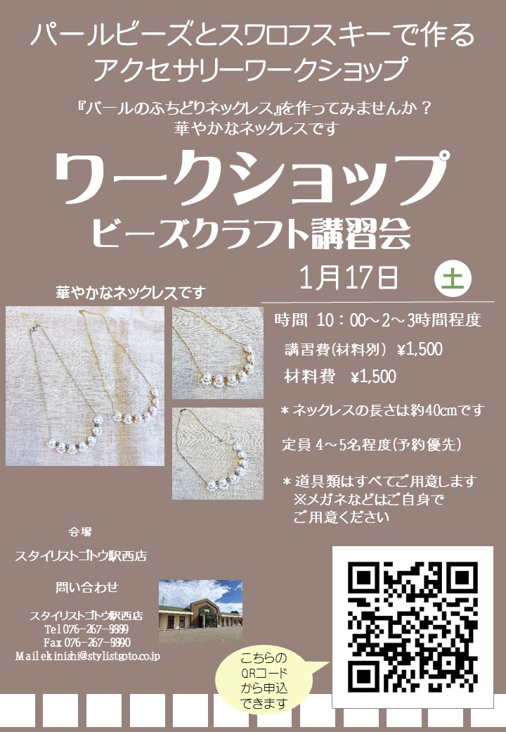 ビーズワークショップ『パールのふちどりネックレス』(駅西店)