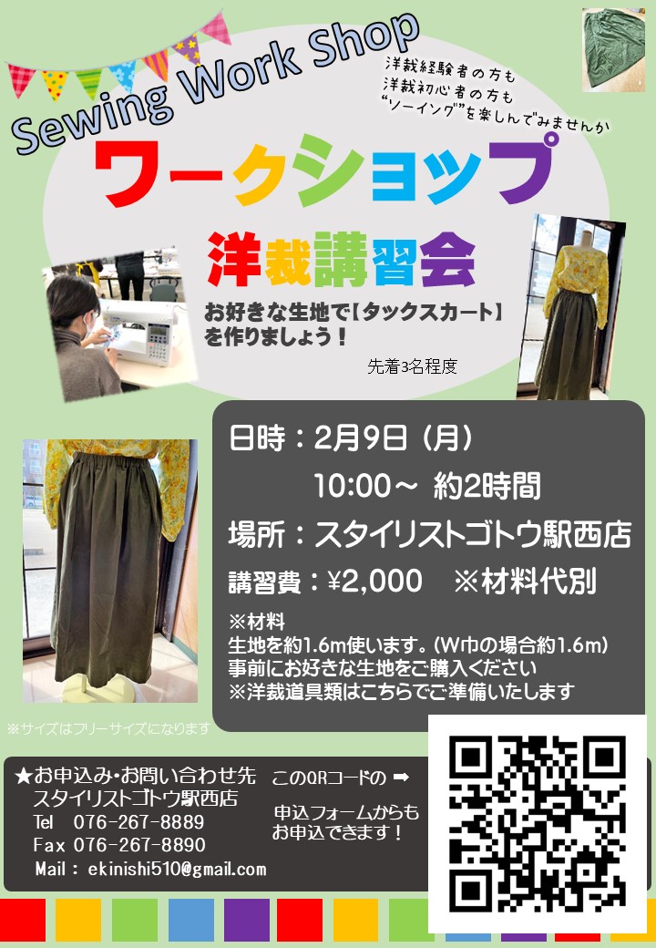 2月に駅西店と富山店で開催ワークショップのまとめページです。皆様のご参加心よりお待ちいたしております。