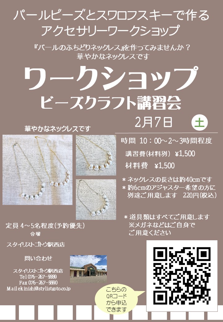 ビーズワークショップ『パールのふちどりネックレス』(駅西店)