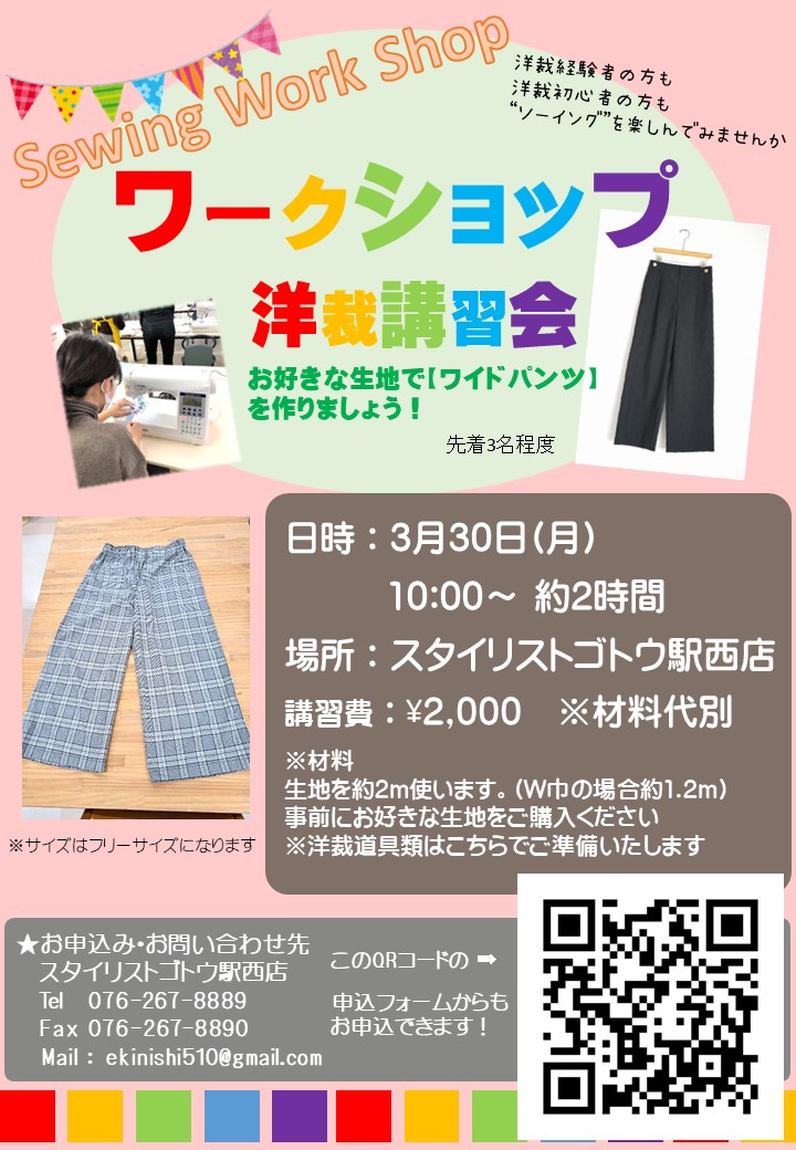 ソーイングワークショップ『ワイドパンツ』(駅西店)
