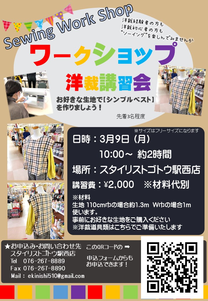 ソーイングワークショップ『シンプルベスト』(駅西店)