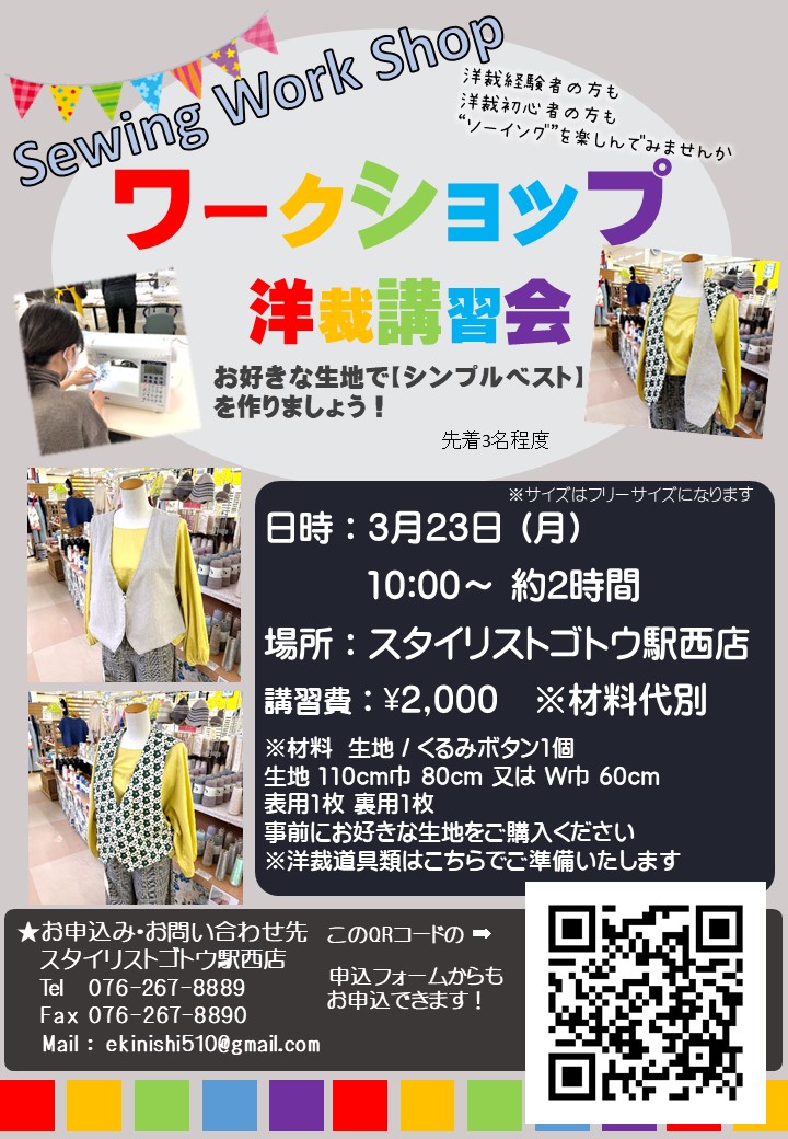 3月に駅西店と富山店で開催ワークショップのまとめページです。皆様のご参加心よりお待ちいたしております。